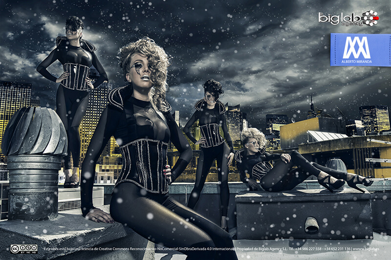 Sesiones de fotografía publicitaria. En estas sesiones se trataba de seguir una línea visual relacionada a los vestuarios que la agencia trataba de promocionar para espectáculos y eventos. Se preparó cada aspecto de las sesiones de forma cuidada y totalmente planificada para que los resultados fueran lo más llamativos posibles, y posteriormente facilitar un post-procesado sólido.